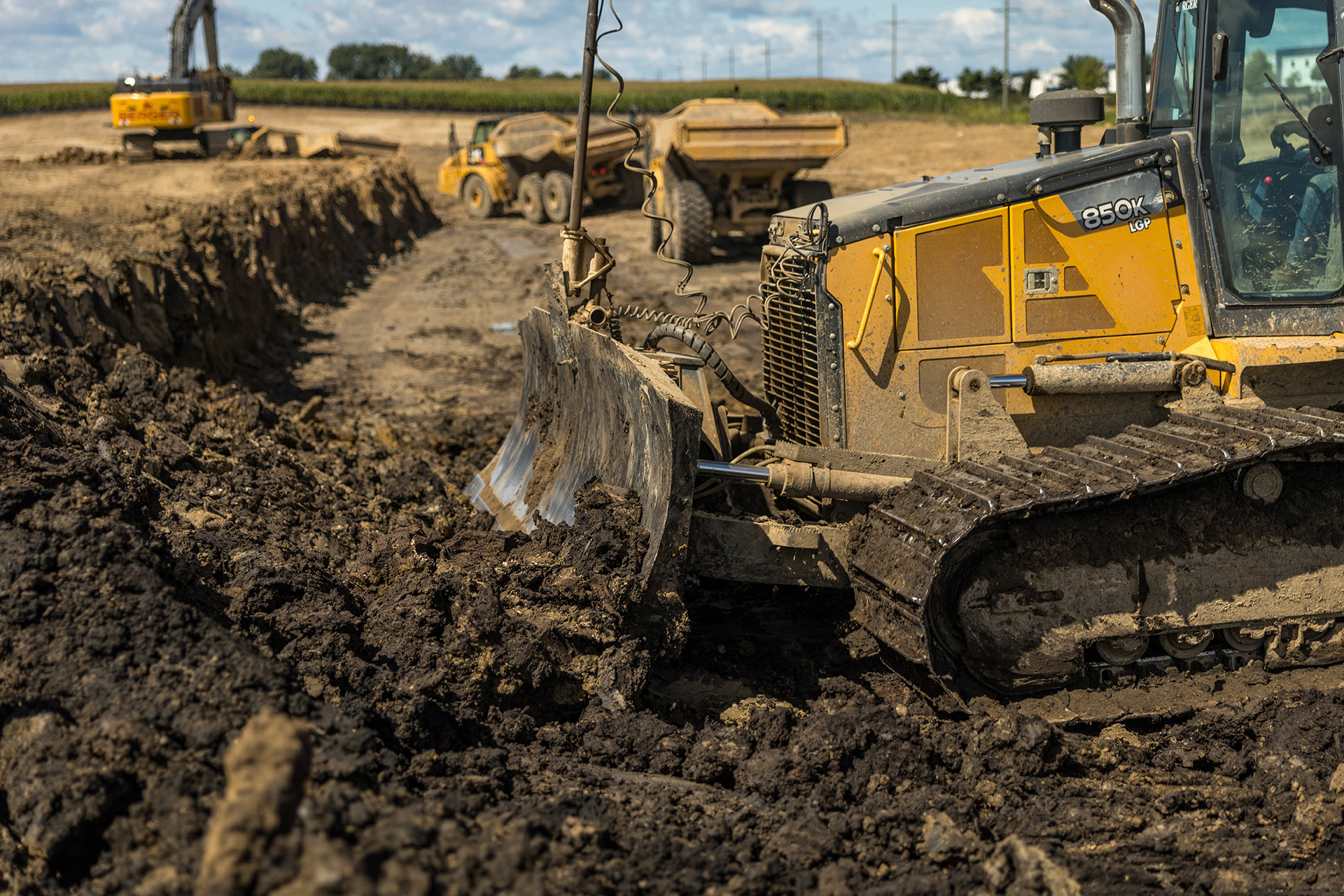 Complicating matters further, site preparation had to happen in a compressed timeframe. To keep momentum, BERGER mobilized quickly—coordinating with a local farmer to harvest crops while simultaneously staging and deploying a full fleet of equipment.