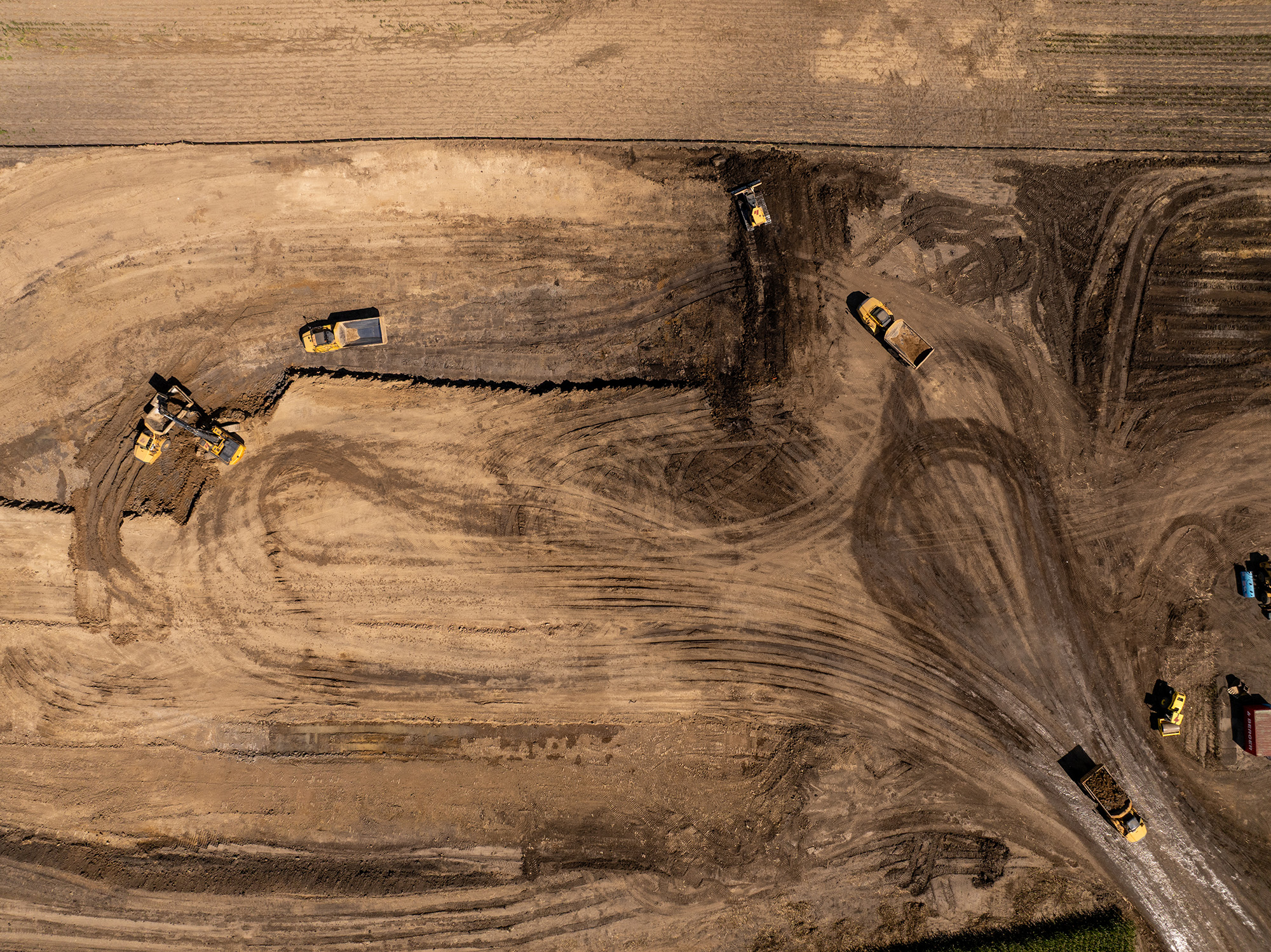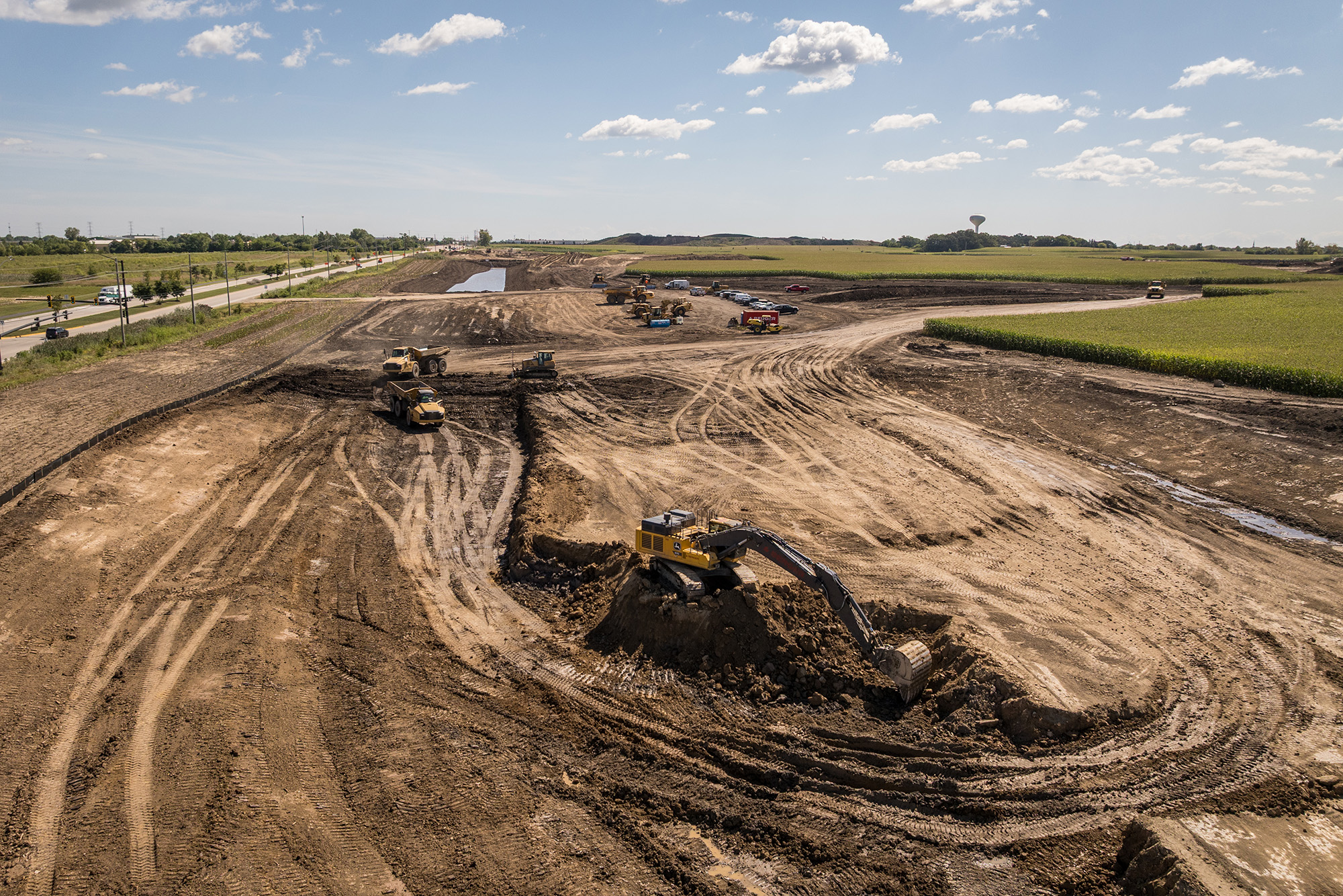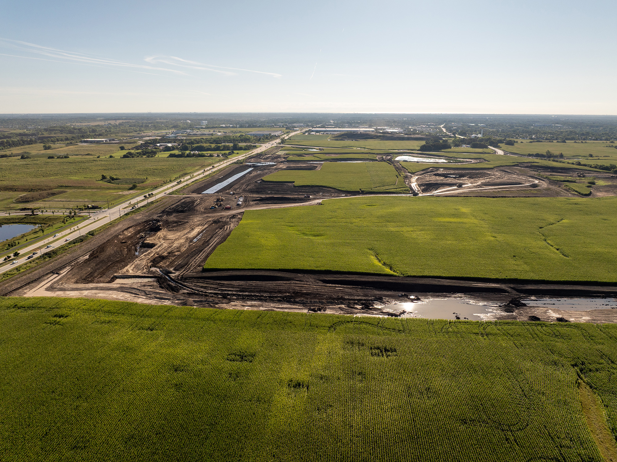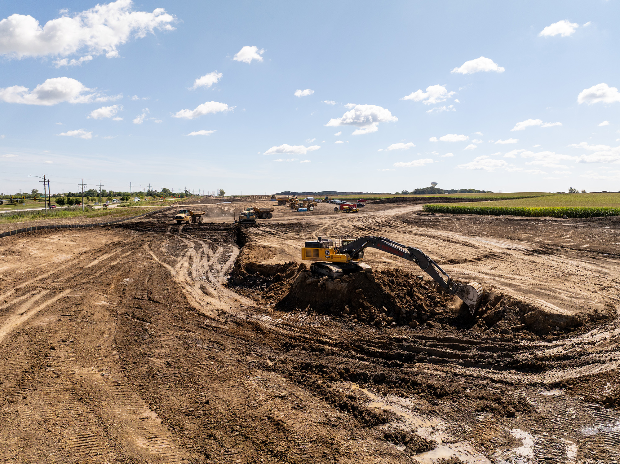The greatest challenge: wetlands with active drain tile systems and more than four feet of standing water. BERGER needed to carefully plan dewatering strategies, reroute drain tiles, and manage onsite water flow to make the land workable for mass excavation.